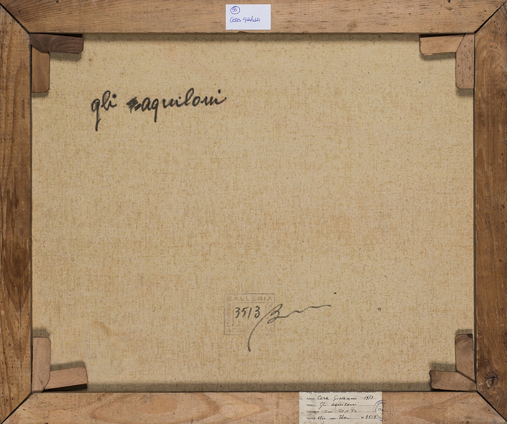 Etichetta e timbro della Galleria d'Arte Accademia (TO) al retro con relativo numero d'inventario