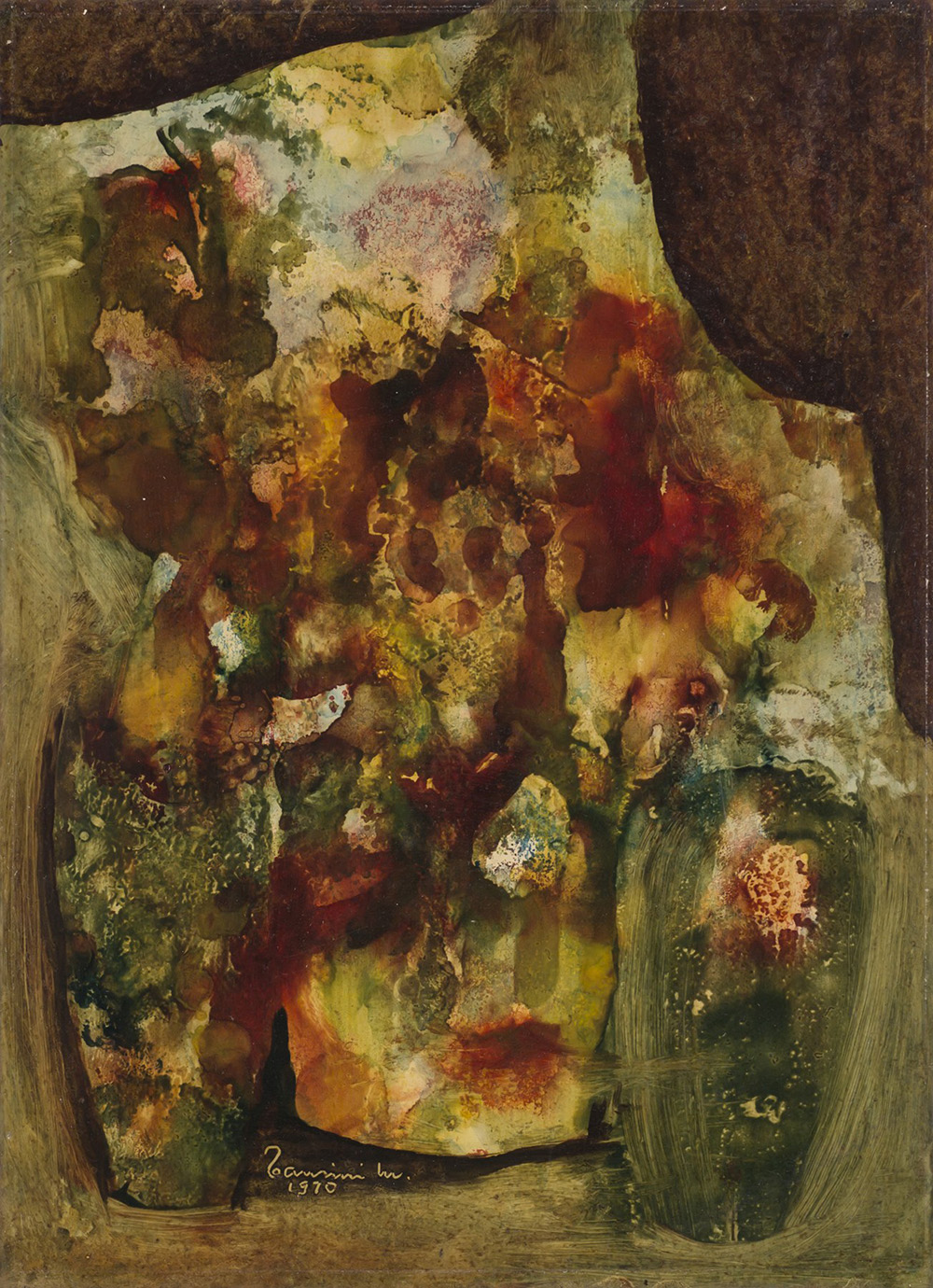 Lotto 311 | MARIO TANSINI Vasi e fiori, 1970 Monotipo su cartone Cm 34,8x25,5 Firma e...
