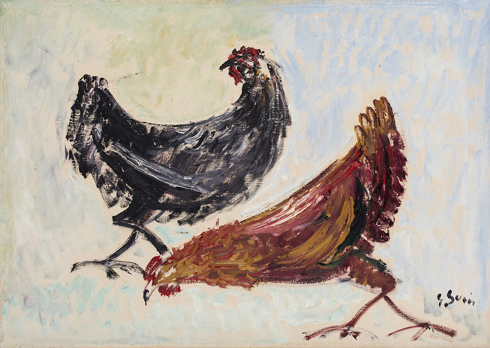 GIUSEPPE SUCCI Galline, 1972 Olio su tela Cm 50x70 Firma al fronte Timbro...