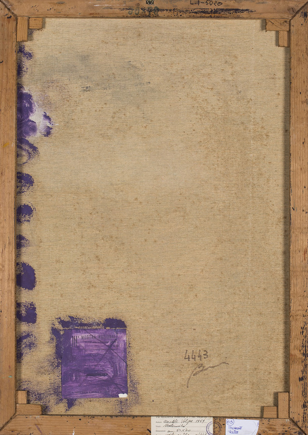 Etichetta e timbro della Galleria d'Arte Accademia (TO) al retro con relativo numero d'inventario