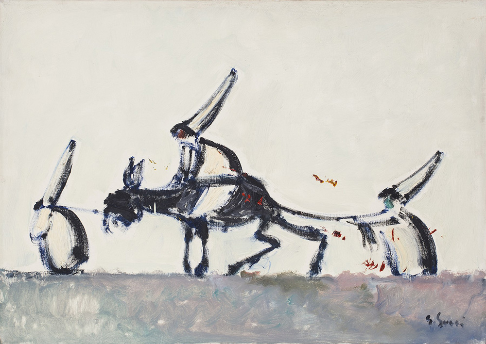 GIUSEPPE SUCCI Il pulcinella col somaro, 1970 Olio su tela Cm 49,3x69,7 Firma...