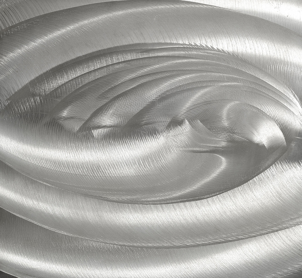 GETULIO ALVIANI 1939 A 131, 1961 Alluminio su tavola, cm. 45 x 45 Firmato e datato sul retro Dedica dell'artista ad Ibrahim Kodra sul retro L'artista ha confermato l'autenticità dell'opera Prov. Collezione Privata