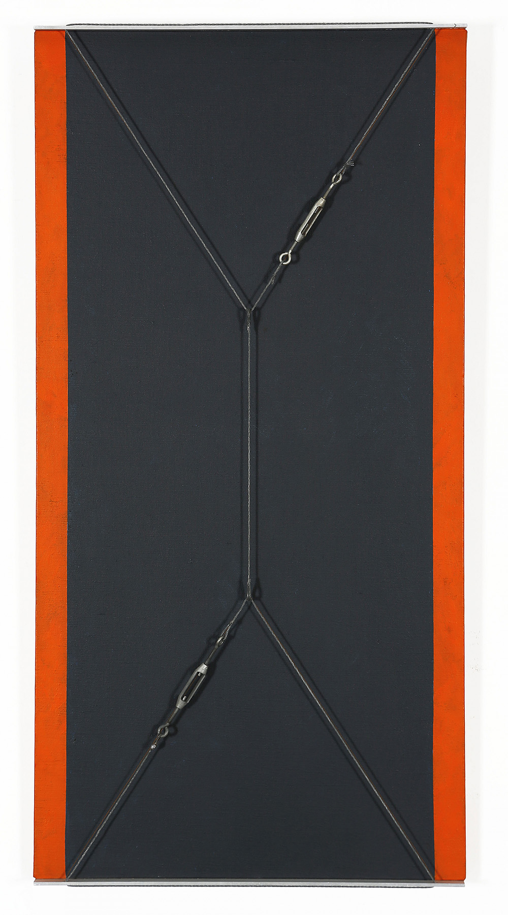 GIANFRANCO PARDI 1933 - 2012 Architettura, 1975 Acrilico su tela, tiranti e placche in acciaio, cm. 100 x 50 Firmato e datato sul retro Etichetta Galleria Fumagalli Bergamo sul retro Prov. Collezione Privata