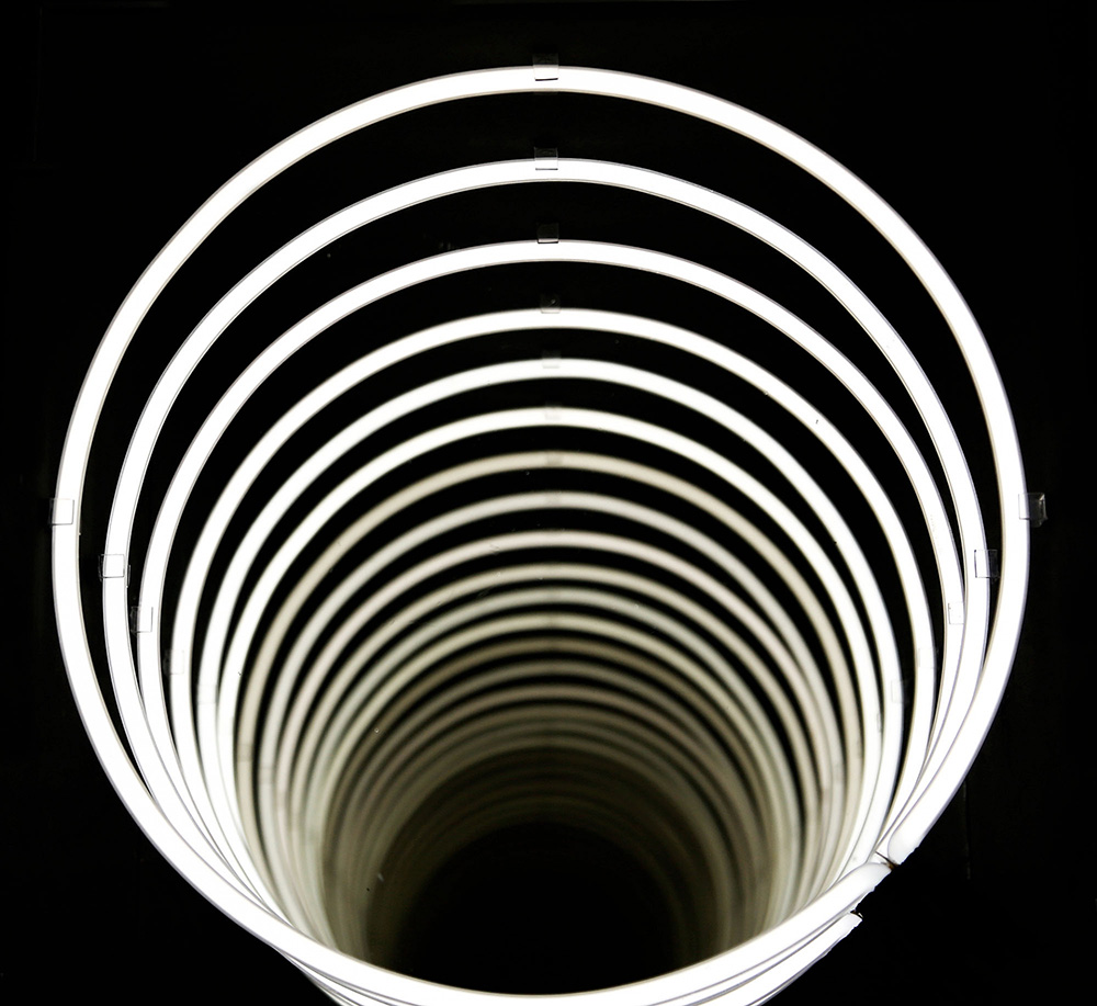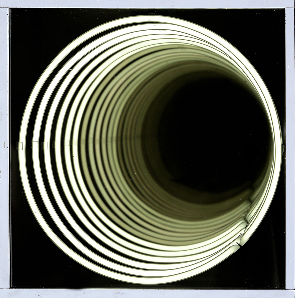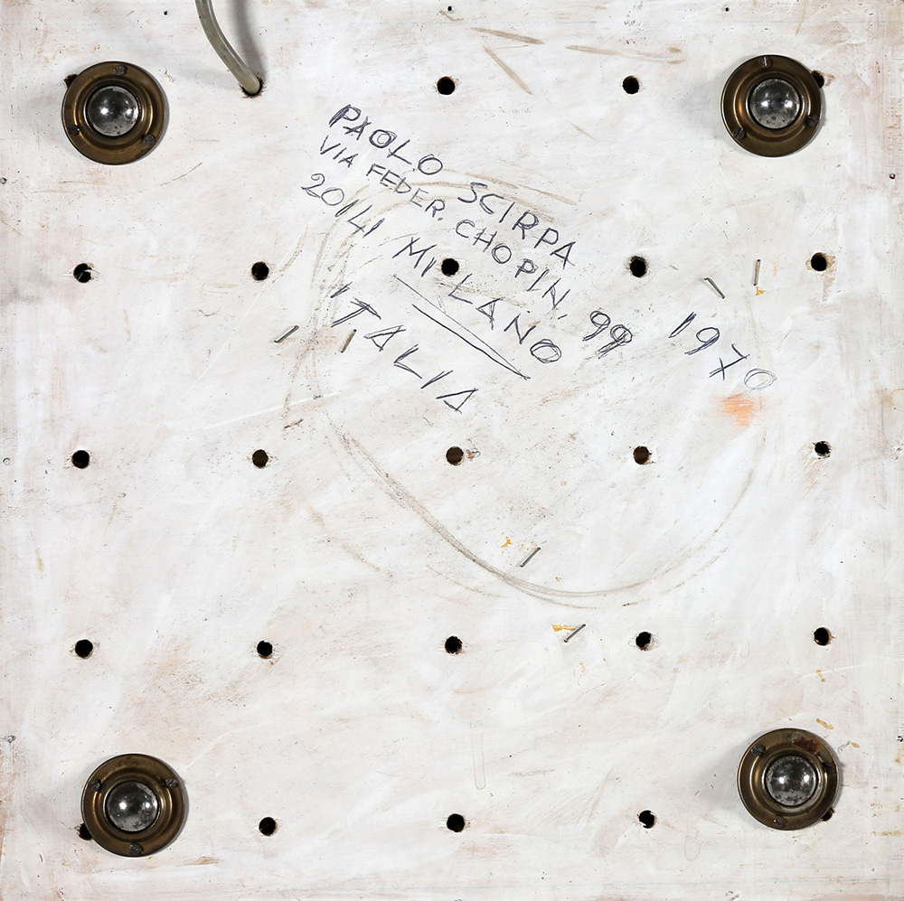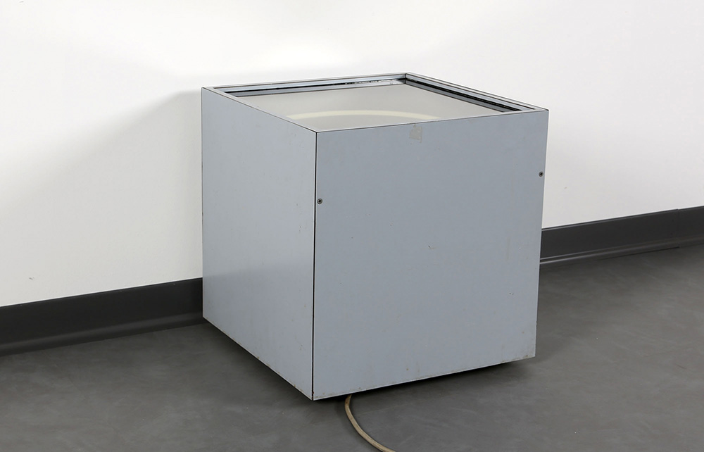 PAOLO SCIRPA 1934 Pozzo - Espansione, n. 43, 1979 Assemblaggio, legno, neon bianco e specchi, cm. 40 x 40 x 40 Firmato e datato Autentica dell'artista su fotografia Prov. Collezione Nino Calos Prov. Collezione Privata