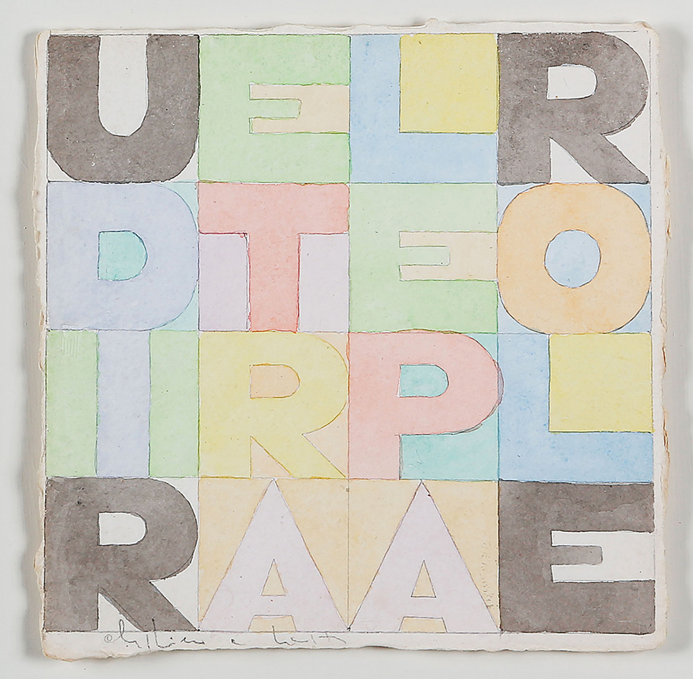 ALIGHIERO BOETTI 1940 - 1994 Udire tra le parole, 1979 Acquerello su carta, cm. 19 x 19 Firmato in basso a destra Autentica Archivio Boetti su fotografia Prov. Collezione Privata