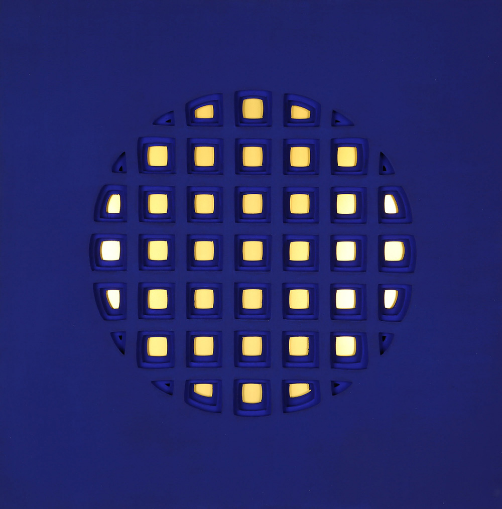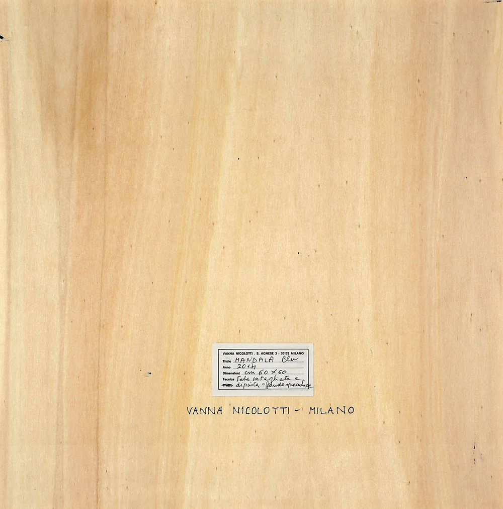 VANNA NICOLOTTI 1929 Mandala blu, 2014 Tela intagliata dipinta e metallo anodizzato, cm. 60 x 60 Firmato sul retro Autentica dell'artista su fotografia Prov. Collezione Privata
