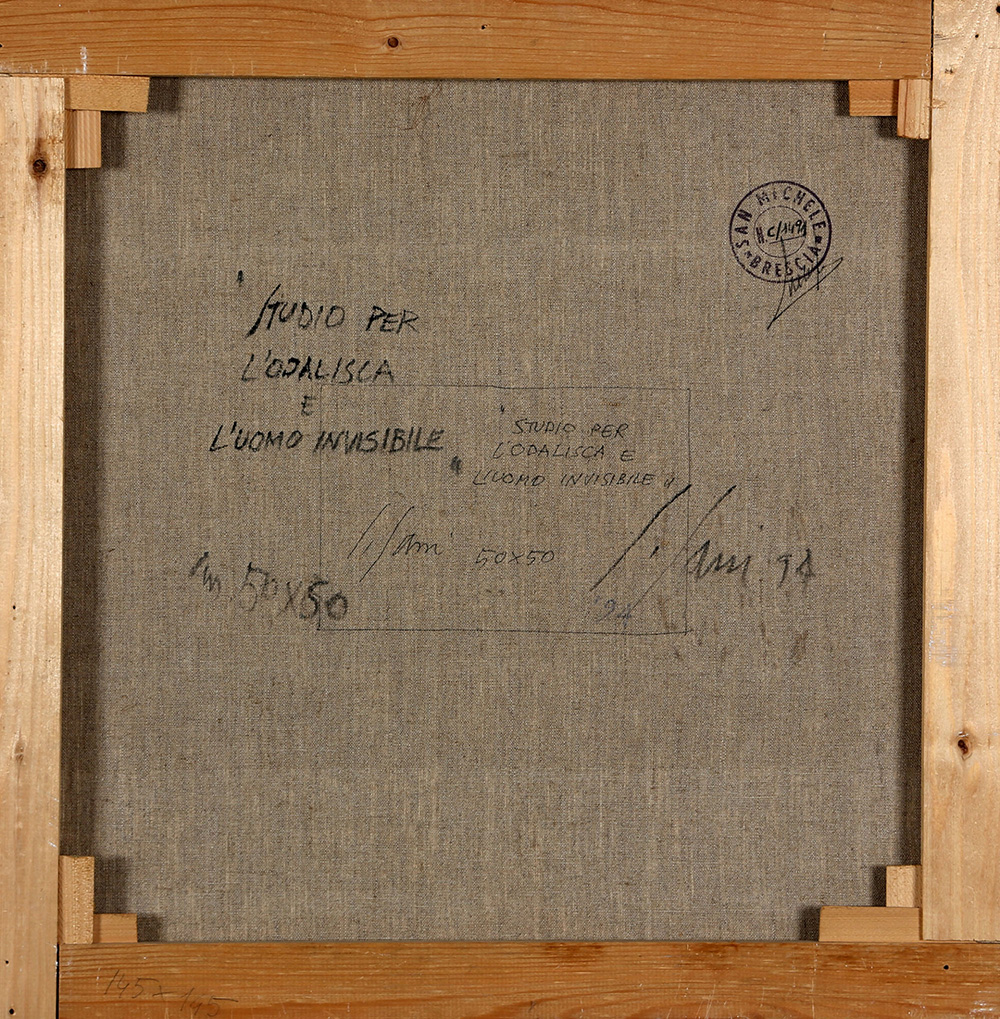 SERGIO SARRI 1938 Studio per l'odalisca e l'uomo invisibile, 1994 Olio su tela, cm. 50 x 50 Firmato e datato sul retro Timbro Galleria San Michele Brescia sul retro Prov. Collezione Privata