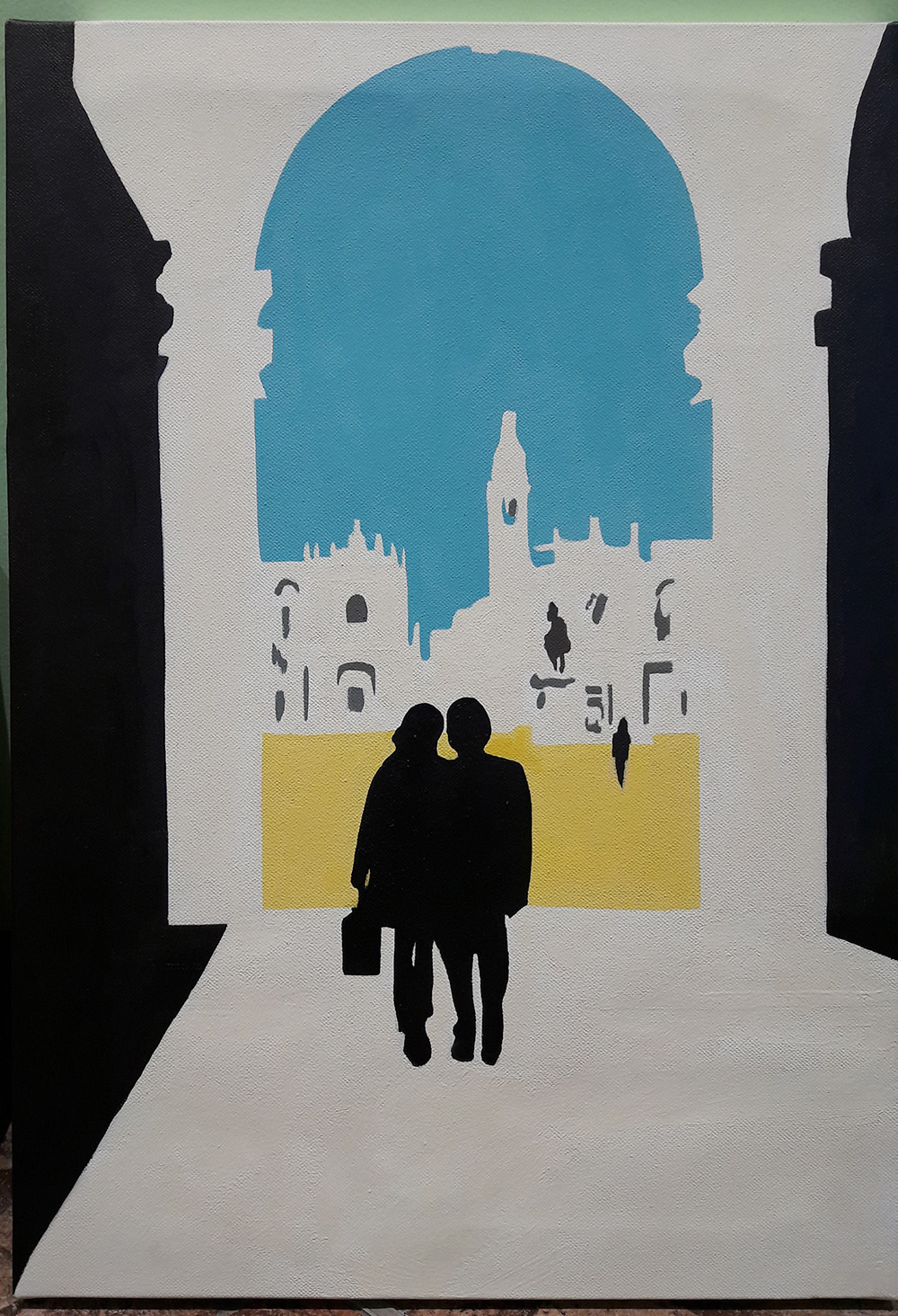 Maribel Moreno, "Momento in Piazza San Carlo" - Olio su tela - cm 50x35 -...