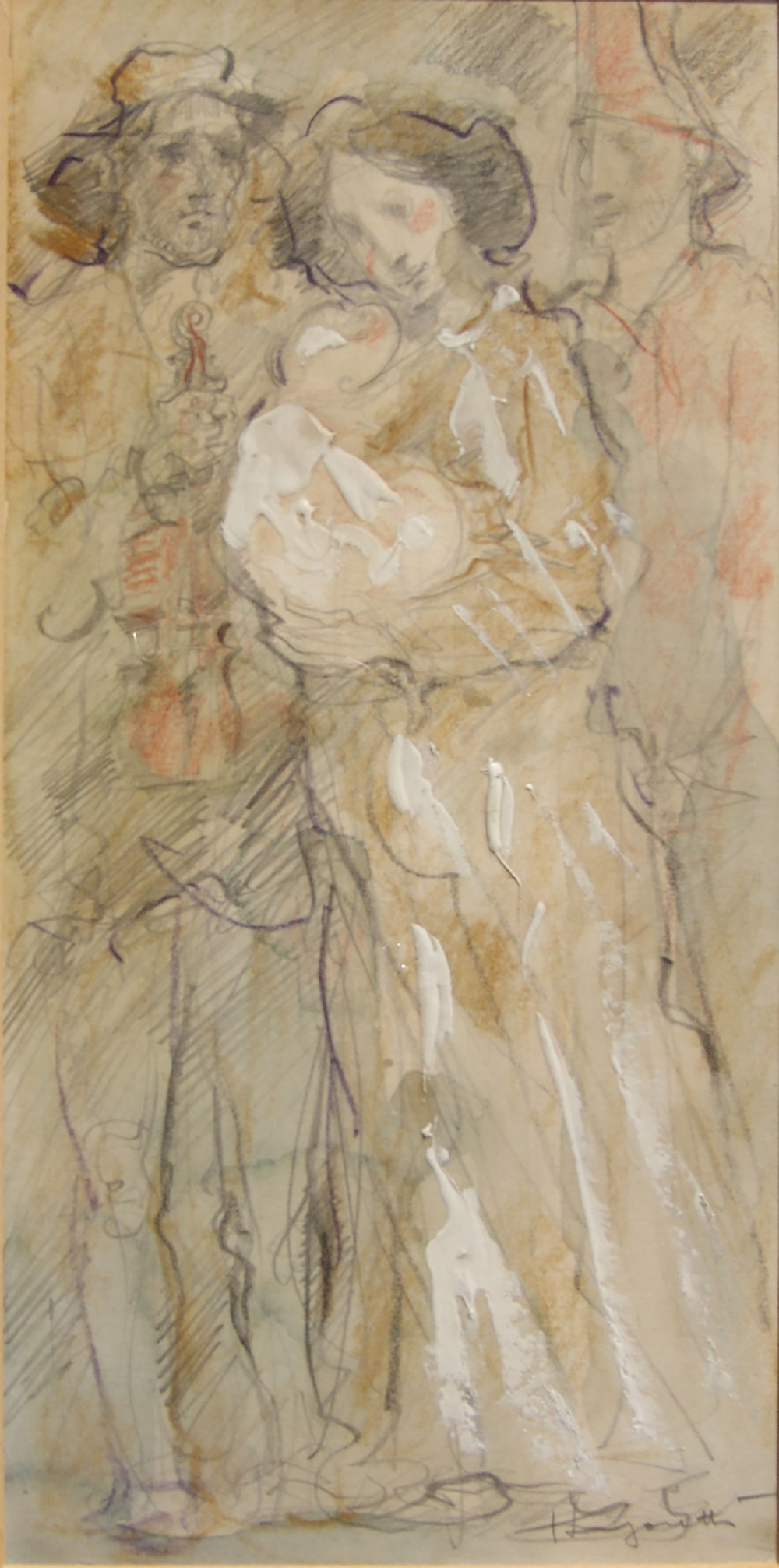 Lotto 60 | Trento Longaretti, "Famiglia Trento" - Tecnica mista su carta - cm 28x13,5 -...