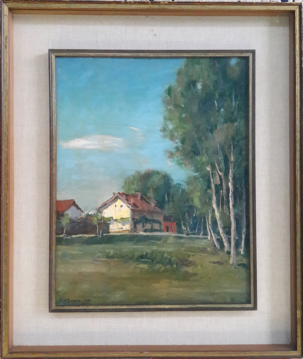 Vellan Felice "Casa con alberi" - 1951 - Olio su tavola - cm. 45x35- Firma e data in basso a sx- Autentica e provenienza Galleria Accademia TO