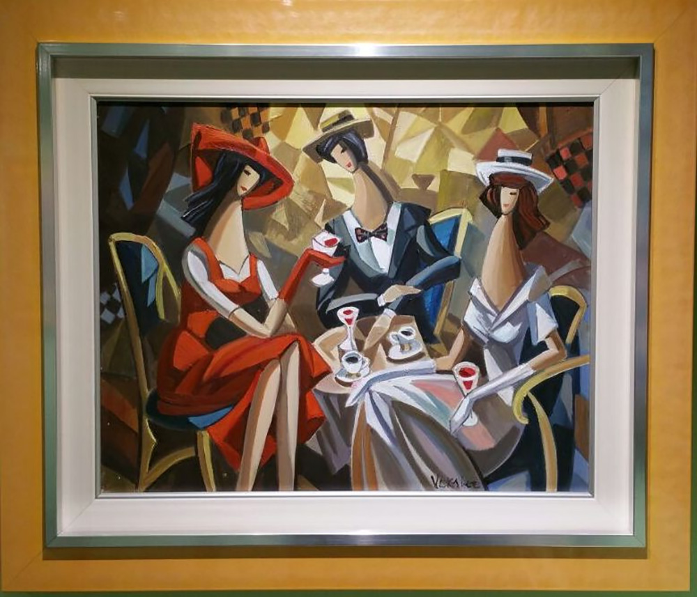 Samuel Veksler "Aperitivo" - Olio su tela - cm 40x50 - Autentica su foto Galleria l'Alfiere TO