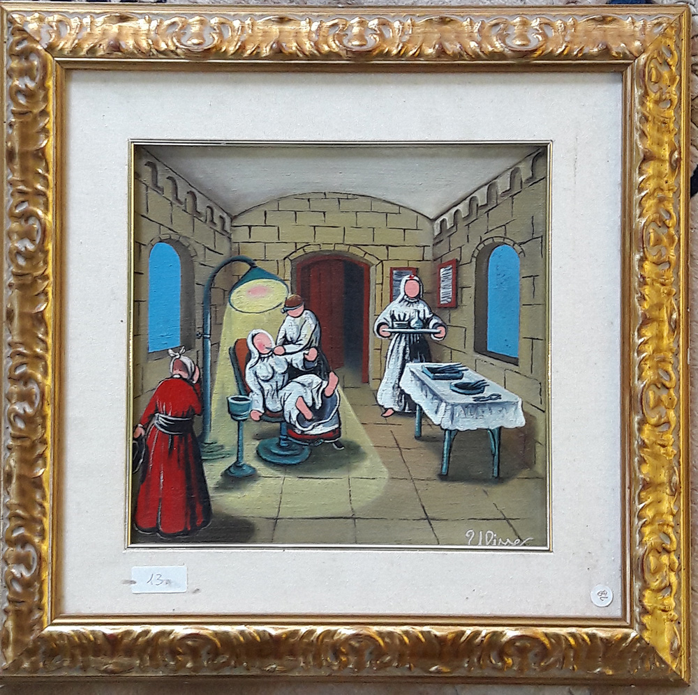 Ulisse "Dentista" - Olio su tavola - cm 29x30 - Firma autografa dell'artista un basso a dx - Autentica e archivio dell'artista su foto