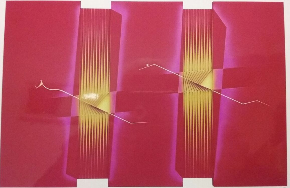Alberto Biasi "S.T." - 2003 - assemblaggio, rilievo e acrilico su tela - cm 100x153,5 - Autentica e archivio dell'artista su foto