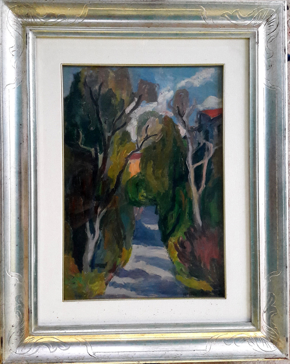 Alfredo Beltrame "Viale alberato" - 1942 - Olio su tela - cm 50x35 - Etichetta e Provenienza Galleria Accademia TO