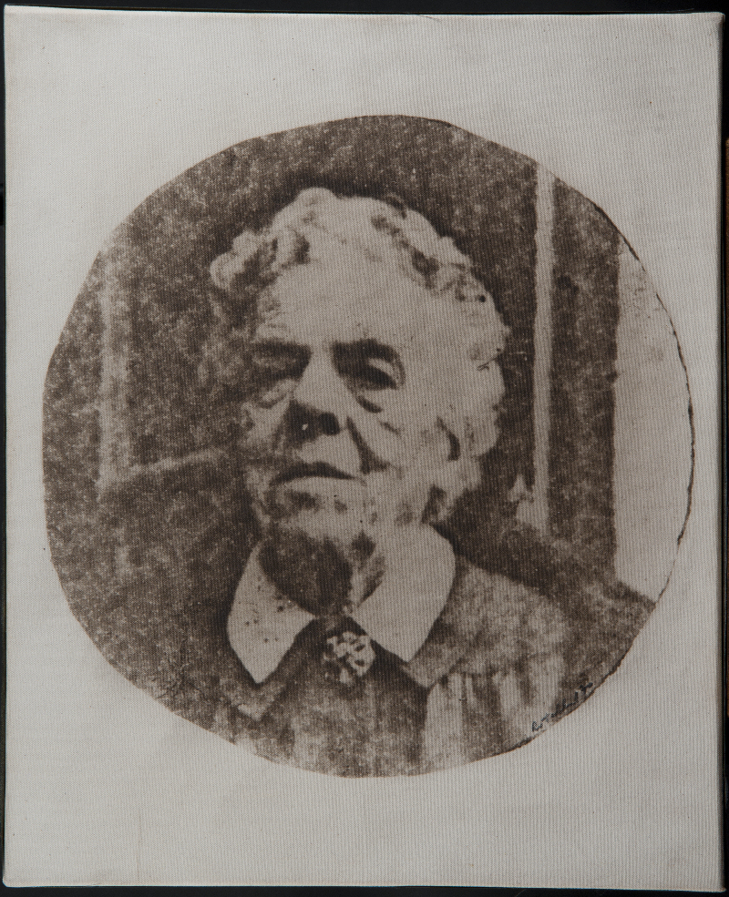 Mimmo Rotella "La Grand Mere de Jacky" - 1970 -Proiezione di foto su tela emulsionata- cm 46x38 - Autentica e provenienza Galleria Soave Alessandria