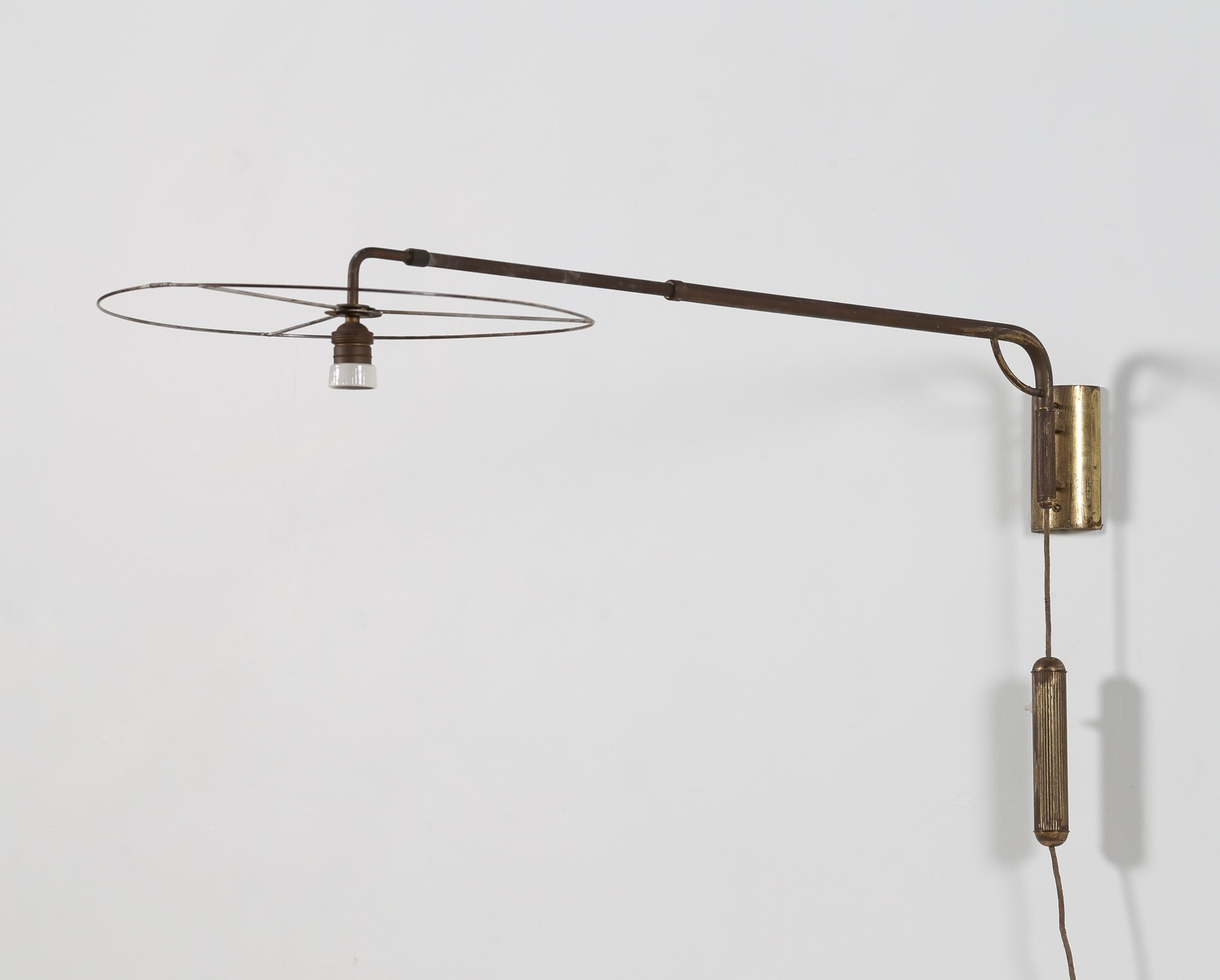 ARREDOLUCE Attrib. Lampada telescopica da parete in ottone e metallo laccato, anni 50. -. Cm 43,50 x 85,00 x 129,00.