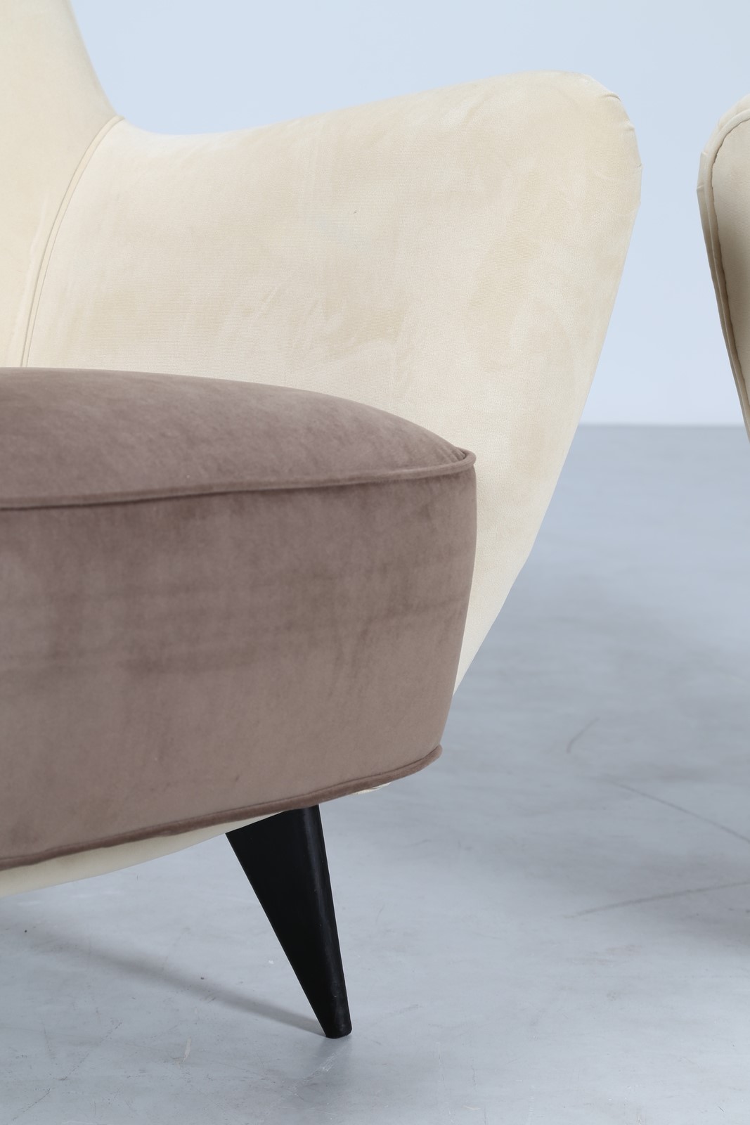 VERONESI GUGLIELMO Coppia di poltrone con struttura in legno, imbottitura...
