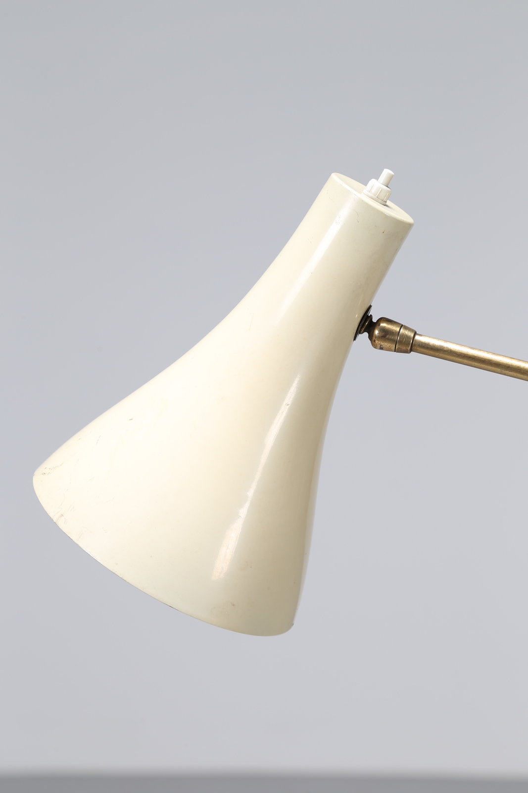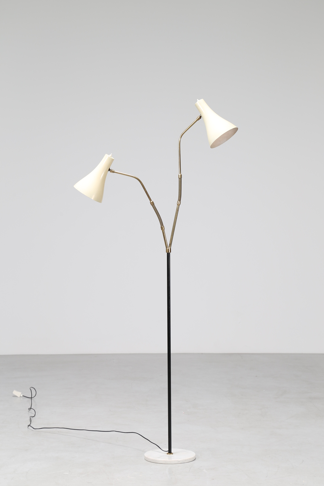 STILNOVO Lampada da terra con braccia flessibili, in ottone metallo laccato e base in marmo, anni 50. -. Cm 80,00 x 173,00 x 25,00.