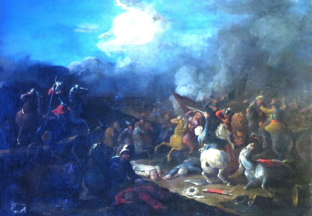 PITTORE DEL XVII SECOLO - 'SCENA DI BATTAGLIA' (BATTLE SCENE) Olio su tela, 84 x 58 cm Oil on canvas, 33 5/64 x 22 53/64 in.