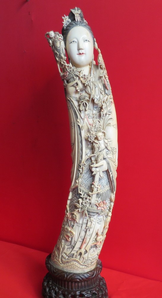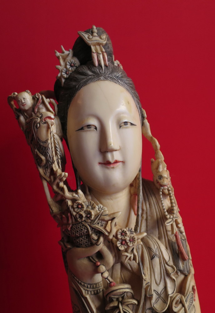 FIGURA IN AVORIO Grande figura raffigurante Guanjin Cina XIX secolo cm. 46