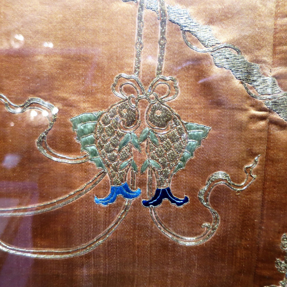 PANNELLO IN SETA, CINA, XIX SECOLO fili dorati con decori ornamentali 58 x 96...