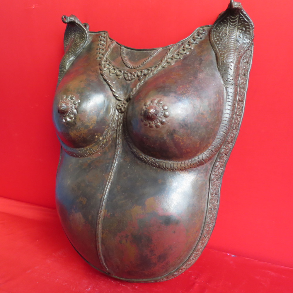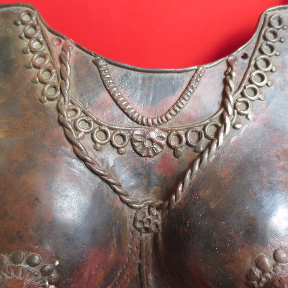 ANTICO COPRI BUSTO FEMMINILE, ORIENTE, FINE XVIII SECOLO in bronzo brunito, 40 x 32 cm Provenienza: Collezione Bisleri A RARE AND ANTIQUE DARK BROWN PATINATED BRONZE FEMALE CORSET. LATE 18th CENTURY