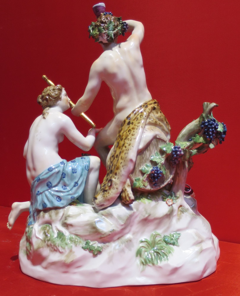 MANIFATTURA DI MEISSEN - 'BACCANALE', XIX SECOLO Gruppo figurato in porcellana decorata in policromia 23 x 14 x 31,5 cm Marchio di fabbrica sotto la base micro restauro A MEISSEN BACCHANALIAN FIGURAL GROUP. 19th CENTURY. MICRO RESTORATION