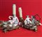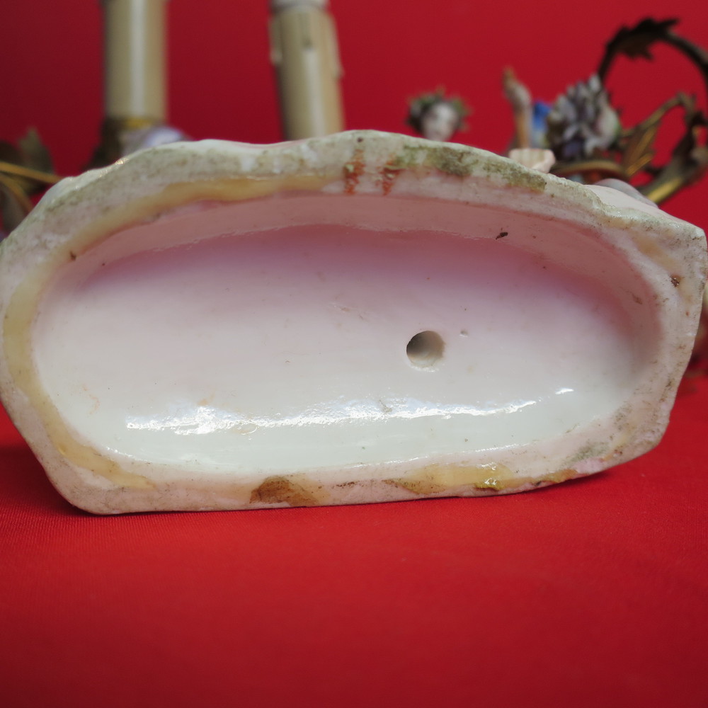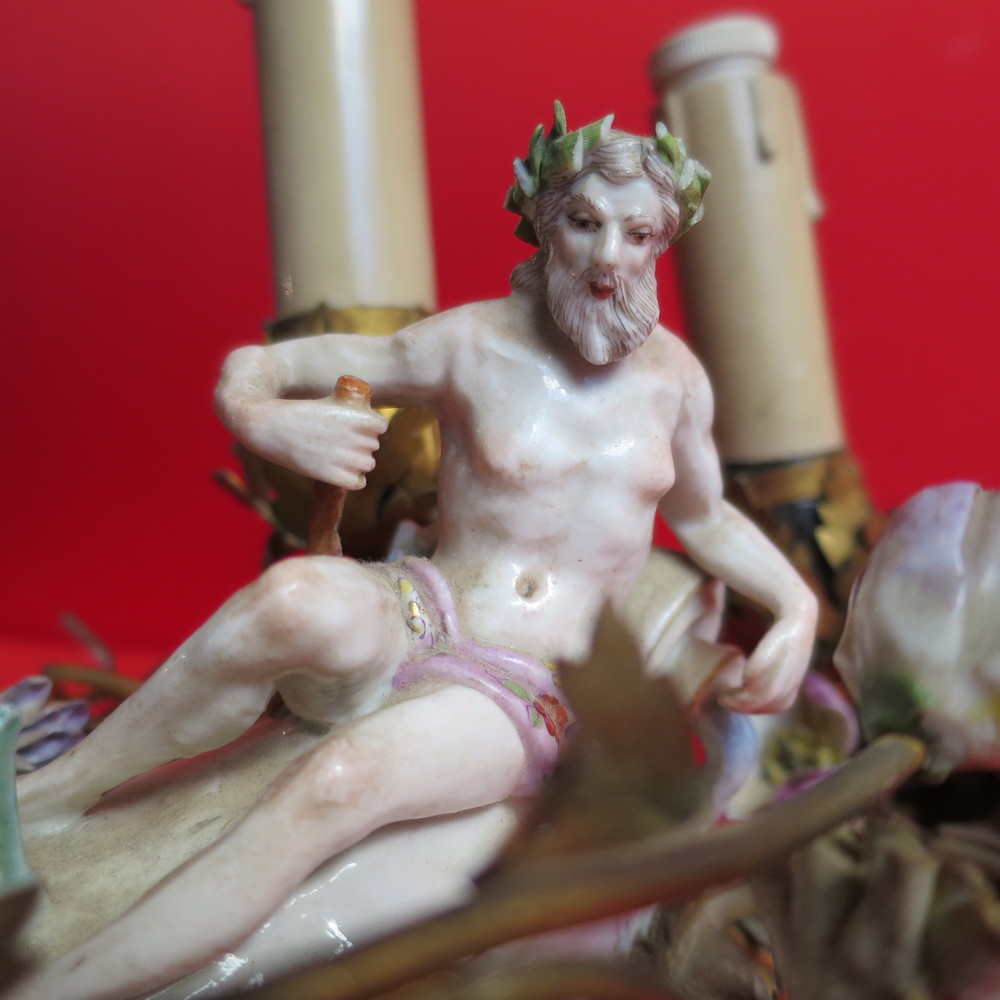 COPPIA LAMPADE In bronzo dorato con figure di Meissen policrome, XVIII secolo cm 10x 13