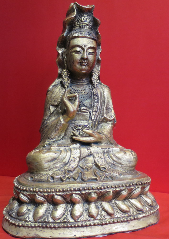 SCULTURA Guanyin in bronzo dorato Cina cm. 43