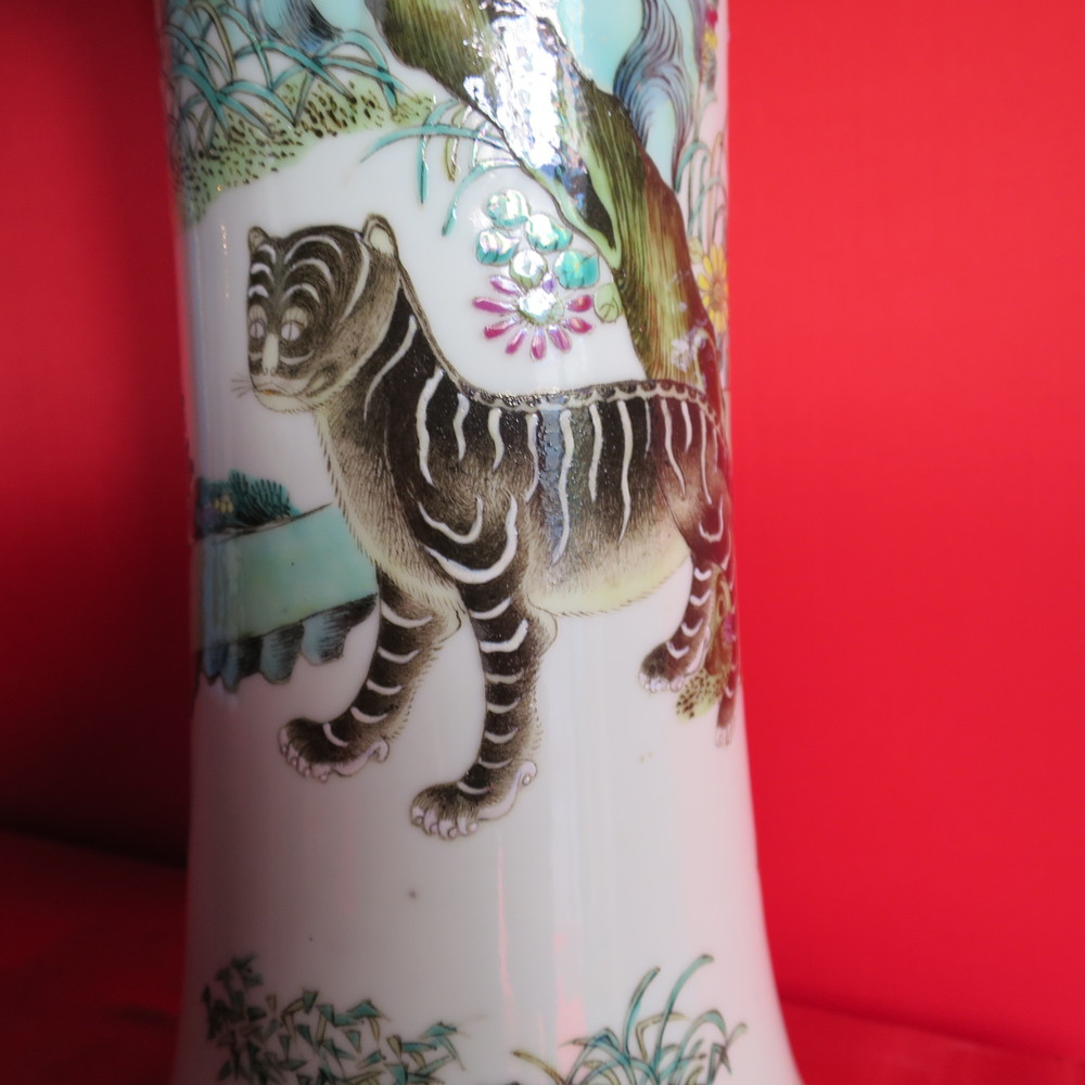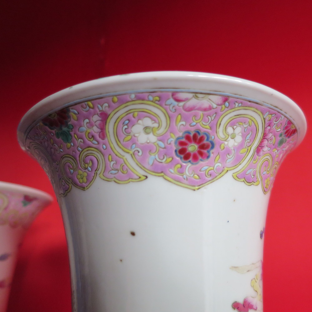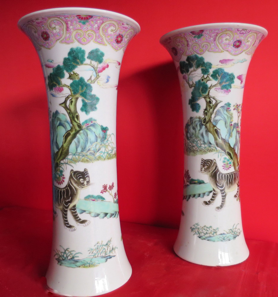 COPPIA VASI A TROMBA, CINA, XIX SECOLO in porcellana policroma, con decoro...