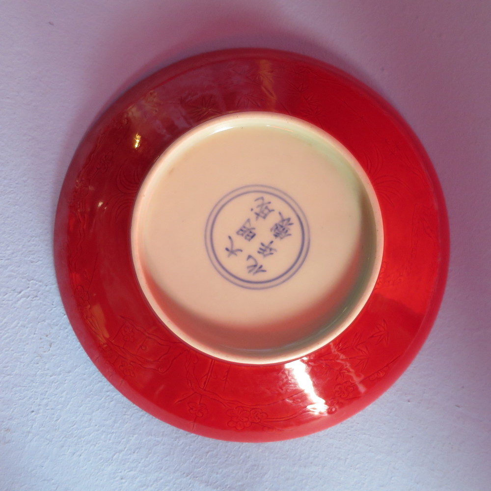 Lotto 148 | PIATTINO ROSSO, CINA, XIX SECOLO in porcellana, marcato sotto la base D 18 cm...