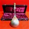 CUCCHIAIO IN ARGENTO DORATO, GERMANIA, XIX SEC. corpo finemente inciso con decori floreali e volute, impugnatura lavorata rappresentata da un santo. Scatola originale. L 19,5 cm A GERMAN SILVER - GILT SPOON. 19th CENTURY