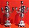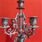 COPPIA DI CANDELABRI IN METALLO ARGENTATO, INIZIO XX SEC. a cinque fiamme,...