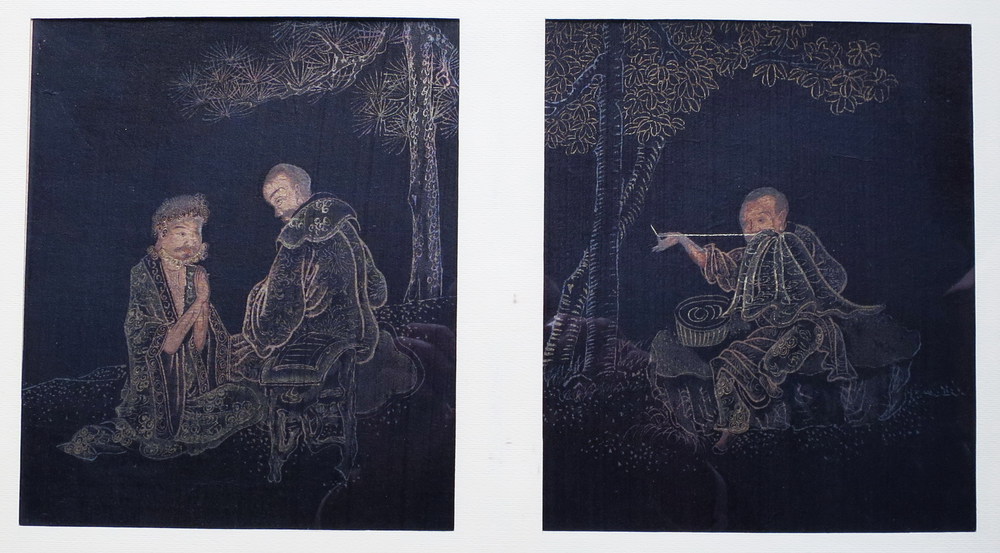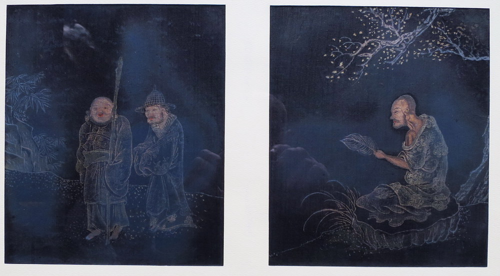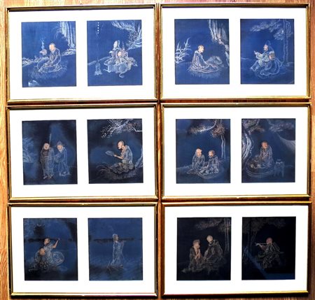 DODICI PANNELLI DIPINTI, ARTE ORIENTALE, INIZIO XX SECOLO raffiguranti figure...