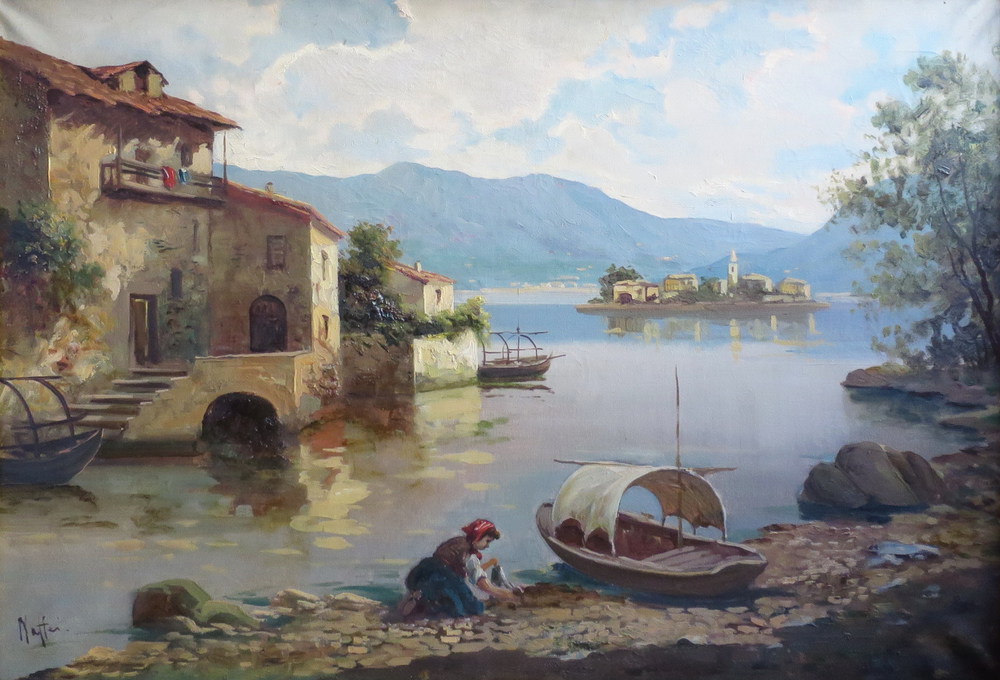 MAFFEI - 'VEDUTA LACUSTRE' (LAKE VIEW) Olio su tela 98 x 70 cm Firmato in...