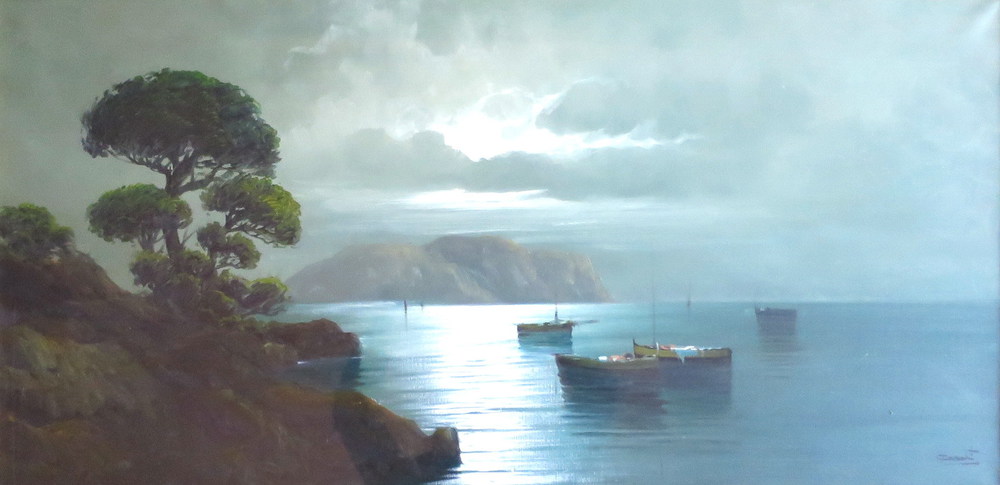 CASATI - 'VEDUTA LACUSTRE CON BARCHE' (LAKE VIEW WITH BOATS) Olio su tela 118...