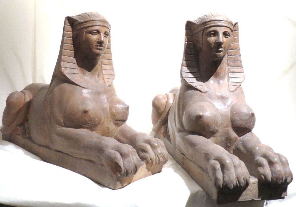SFINGI Coppia di sculture in terracotta "sfingi" Francia Napoleone III cm...