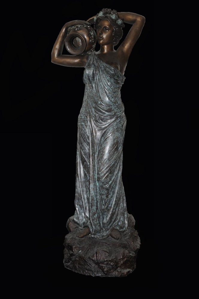 GRANDE FONTANA In bronzo raffigurante "Donna con brocca" XX secolo cm.215x78
