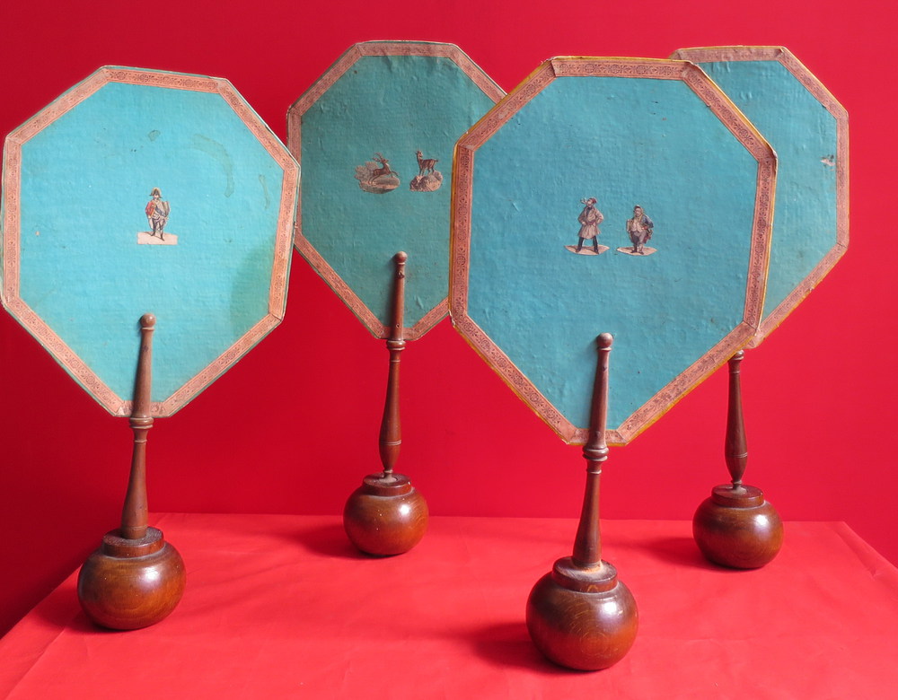 4 VENTOLE PARAFUOCO, ITALIA, XIX SECOLO decorate e poggianti su base in legno...