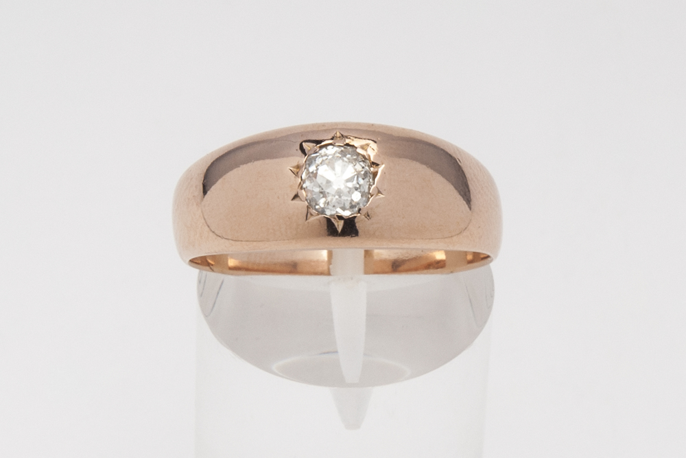 ANELLO IN ORO E DIAMANTE decorato con diamante di taglio antico . Peso g 6,90. Misura 21 AN OLD BRILLIANT-CUT DIAMOND SINGLE-STONE RING