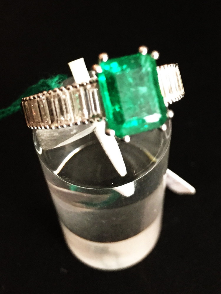 ANELLO IN ORO BIANCO, BRILLANTE E SMERALDO decorato con smeraldo dello Zambia...