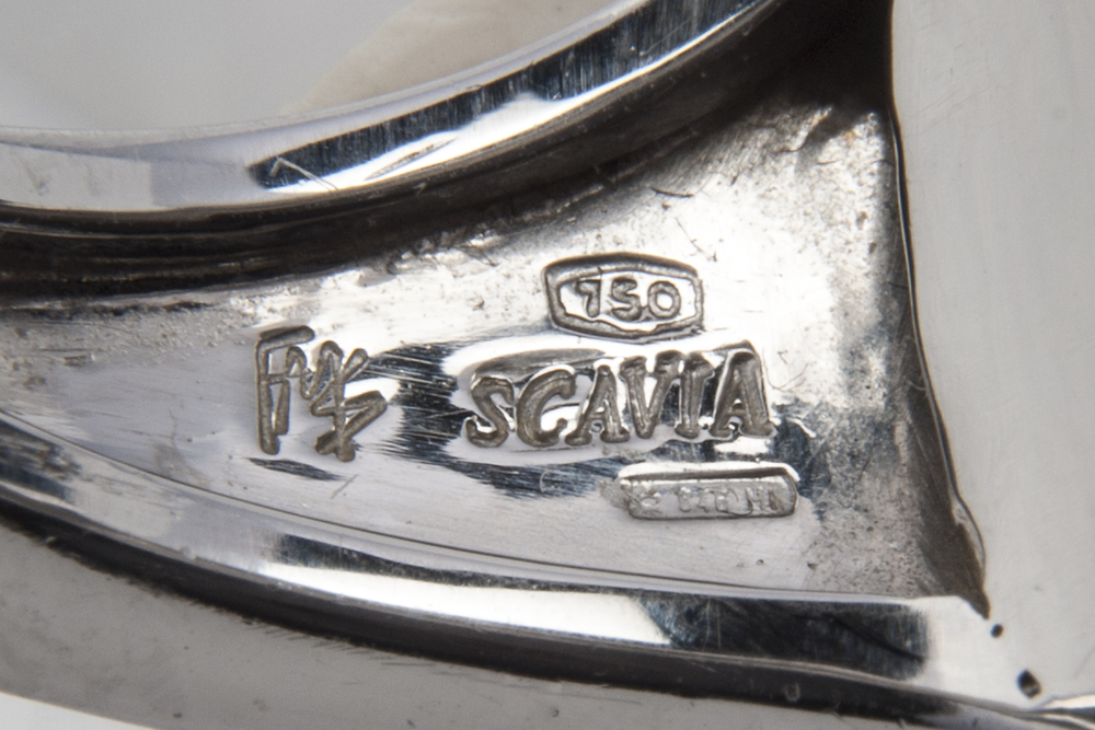FULVIO MARIA SCAVIA - ANELLO IN ORO BIANCO, DIAMANTI E ACQUAMARINE a forma di...