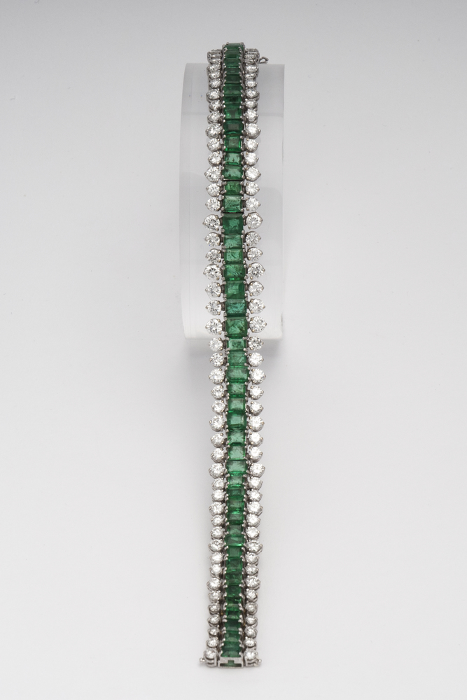 BRACCIALE IN PLATINO, SMERALDI E DIAMANTI decorato con 50 smeraldi taglio...