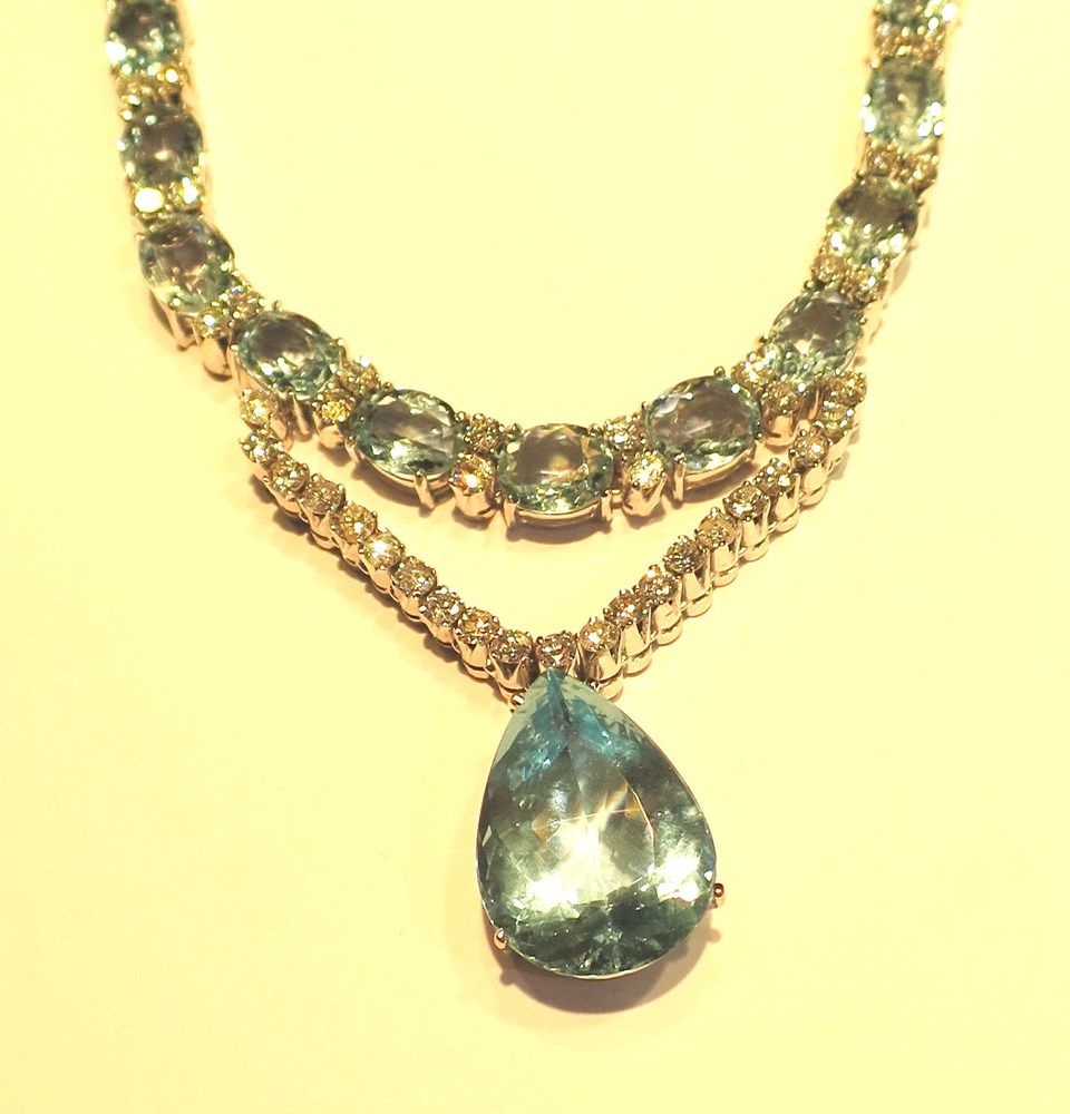 GIROCOLLO IN ORO BIANCO, ACQUAMARINE E DIAMANTI decorato con 44 acquamarine...