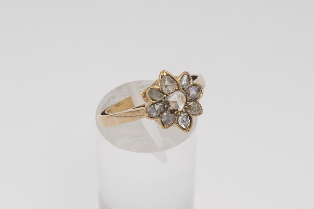 Lotto 368 | ANELLO IN ORO E DIAMANTI realizzato come un fiore, con 9 diamanti taglio...