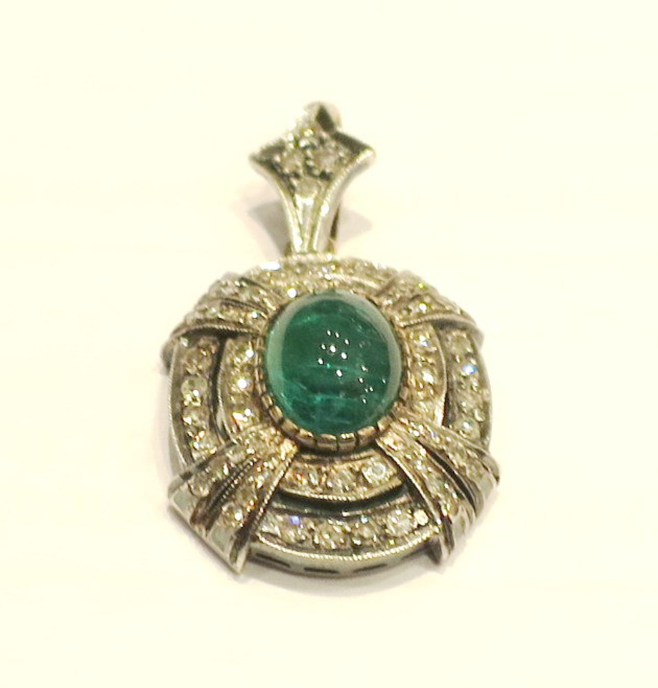 PENDENTE IN ORO BIANCO, SMERALDO E DIAMANTI decorato con smeraldo centrale e...