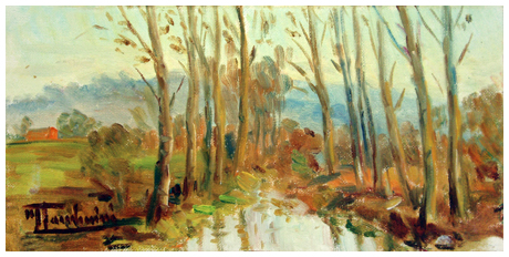 MARIO TAMBURINI Casciana Terme 1914 – Casciana Terme 1989 Ruscello Olio su cartone telato 12 x 25. Firma in b. a s.; sul verso titolo, firma e località. B.A.: 100