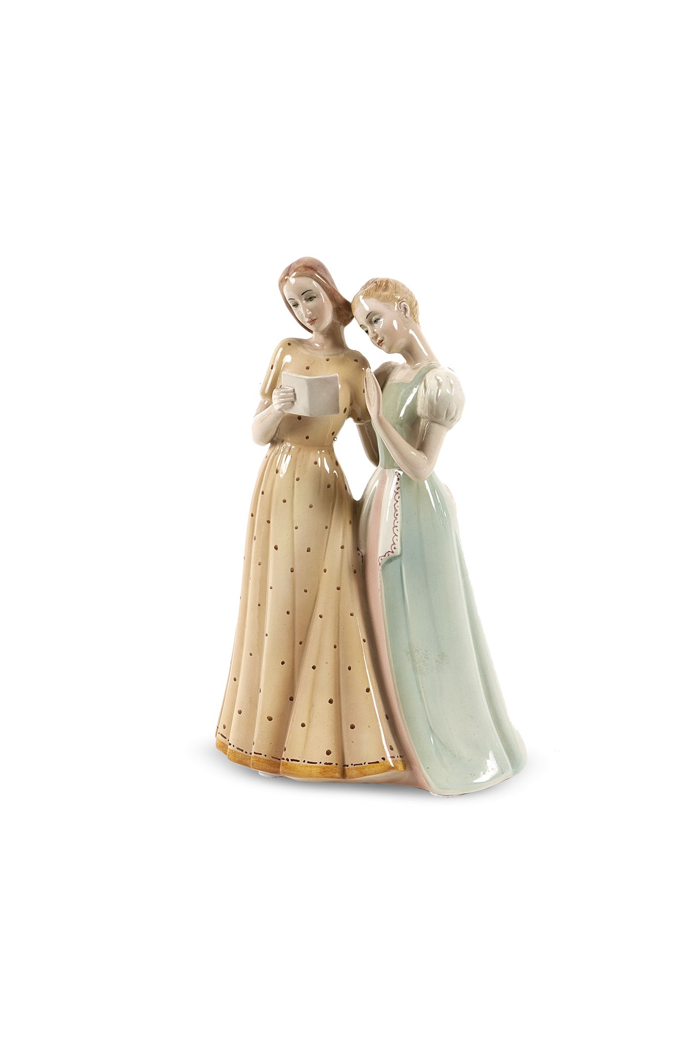 RONZAN ANTONIO La lettera Statuetta in ceramica policroma. Firmata in pasta sotto la base 1937 cm 41x26