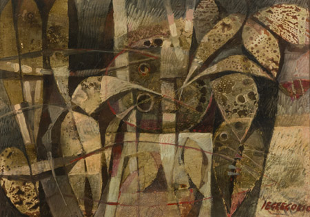 Giuseppe De Gregorio (Spoleto 1920 2007) Alghe Olio su cartone, cm. 50x70 Firmato in basso a destra; Sul verso: firma e titolo.