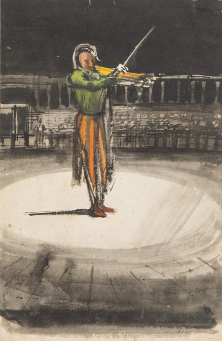 Pietro Annigoni (Milano 1910 Firenze 1988) Violinista Tecnica mista su cartoncino, cm. 35x23 Firmato in basso a destra. Autentica dell'Artista su foto con timbro.